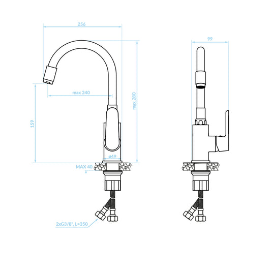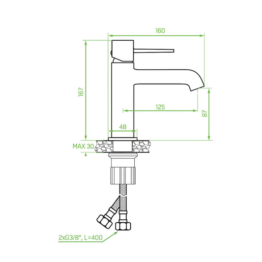 Baterie de lavoar neagra mat, cu pipă flexibilă, BQD 721D