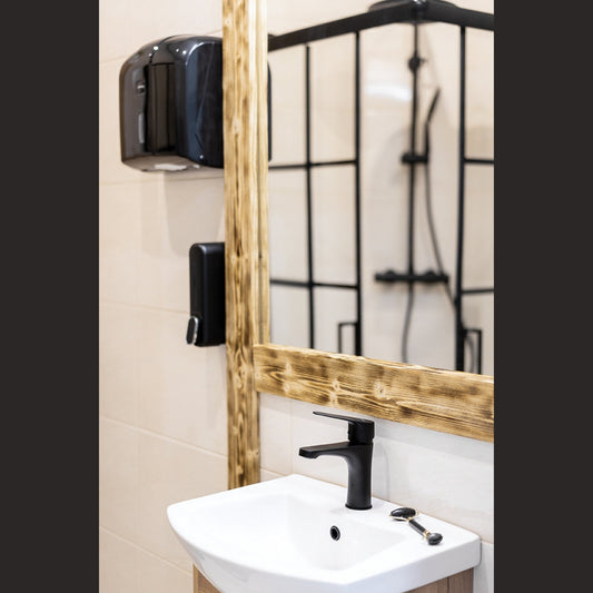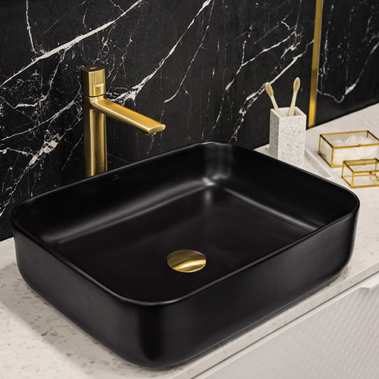 Sagra - Baterie neagra mat, pentru lavoar baie, cu ventil (dop), BQR_722D