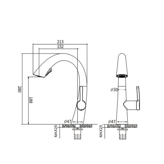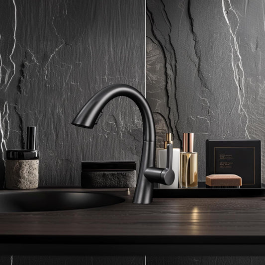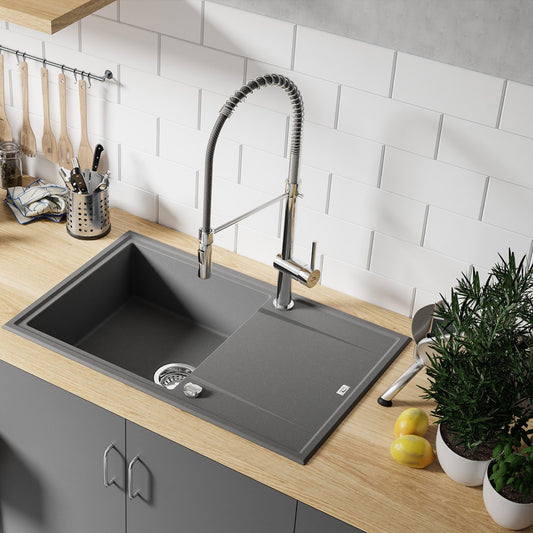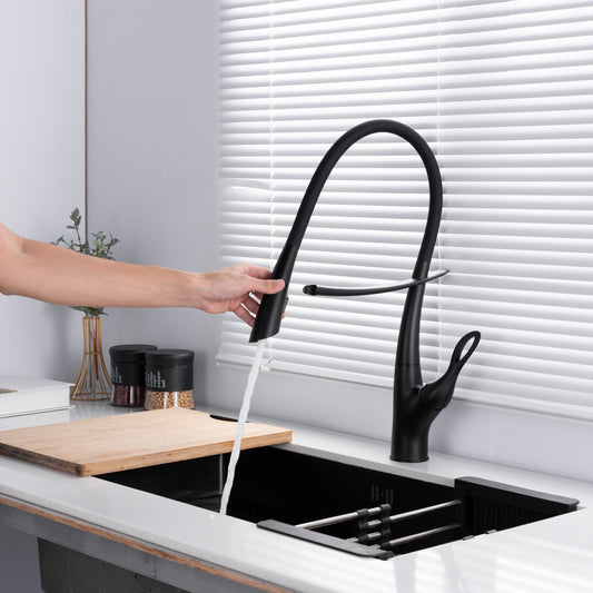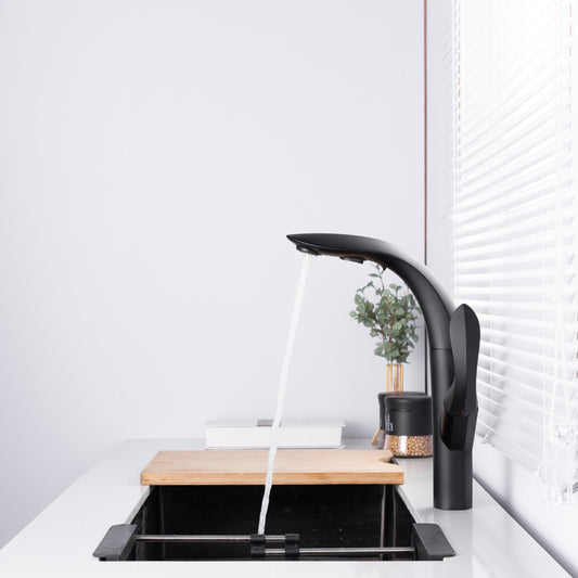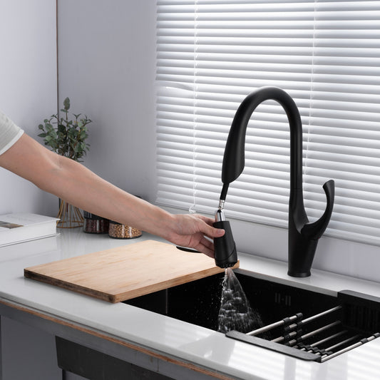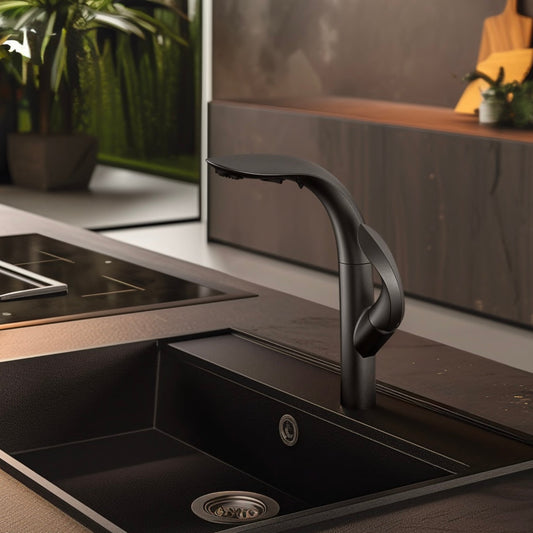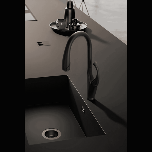KASJA - Baterie chiuvetă bucatarie culoare negru granit, cu pipă mobila, BKN 768D