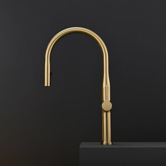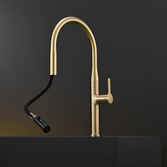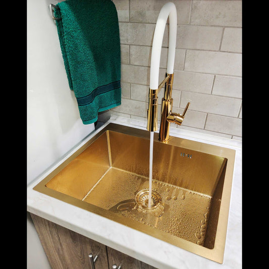 SHIRE baterie chiuveta bucatarie cu pipa flexibila, mobila, culoare alb si auriu lucios, la moda, BQH_G78D