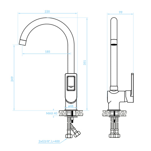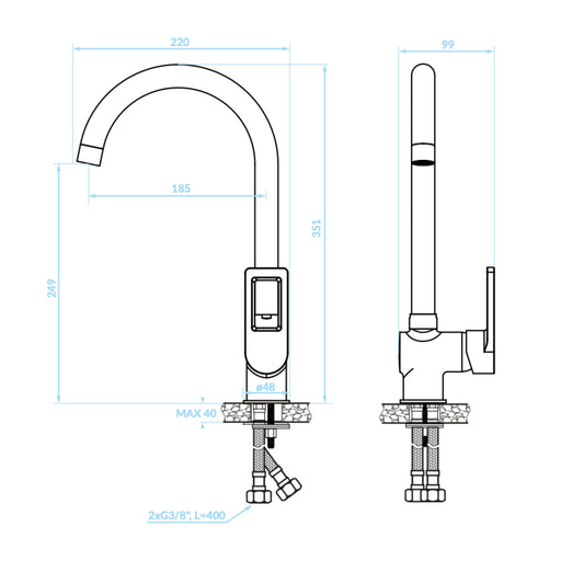 Baterie de chiuvetă cu pipa flexibila, moderna, BLD 06SD
