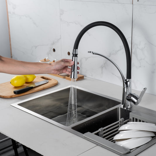 Baterie de bucatarie cu dus extractabil si pipa flexibila