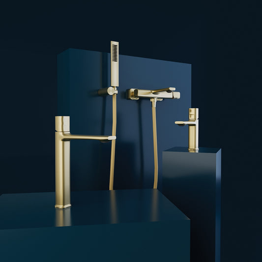 Tores - baterie de cadă încastrată în perete, cu set de duș, design minimalist, auriu sampanie, BVT G11P