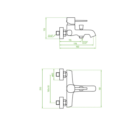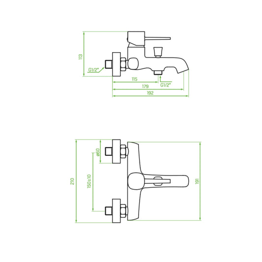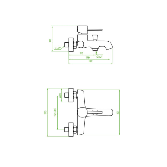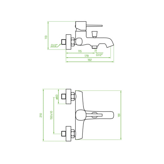 Fresno - Baterie de cadă montată pe perete, fără set de duș, BQF 010D