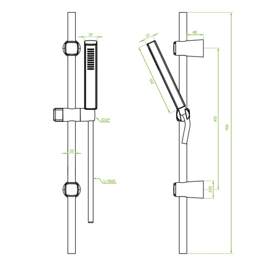 Pola - para de duș cu bară, culoare negru mat, NAP 71A1