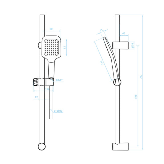 Pola - para de duș cu bară, culoare crom, NAP 01A1