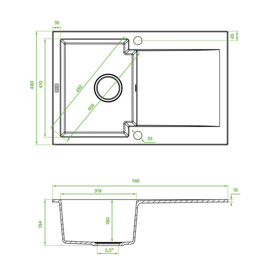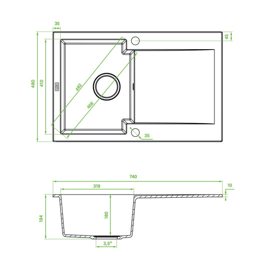 Chichi - chiuvetă cu 1 cuvă cu uscător, eleganta si practica, stil minimalist, SBH 711Y