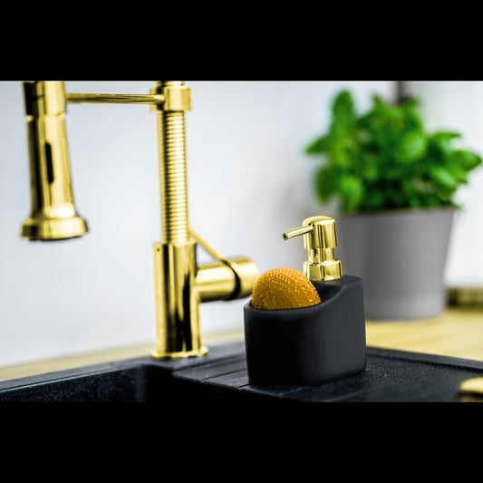 YOGO dozator sapun lichid, ceramic, negru si pompita aurie lucioasa, AMP GM2M
