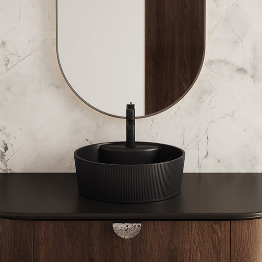 Desna - lavoar rotund negru mat, elegant, din ceramic, pe blat, VUD B236