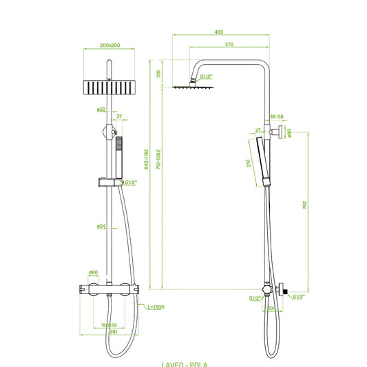 Pola - coloană de duș cu baterie termostatică, culoare auriu lucios, PLA G0TD