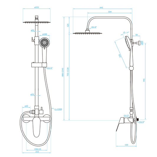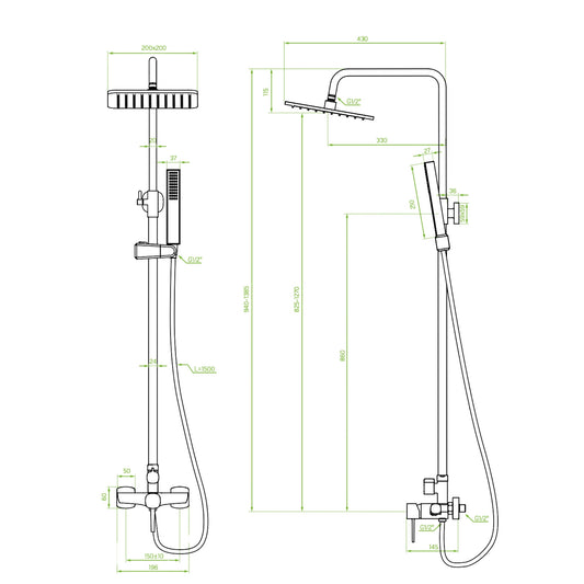 Sagra - Coloană de duș cu baterie, negru mat, PQR_70OB